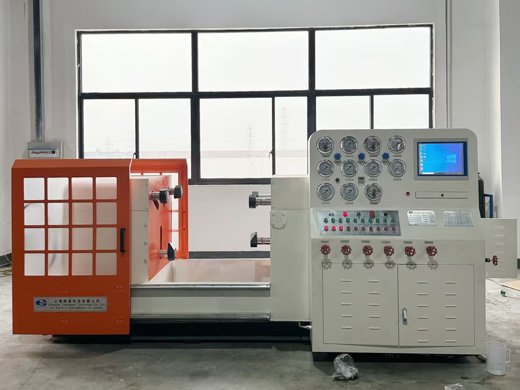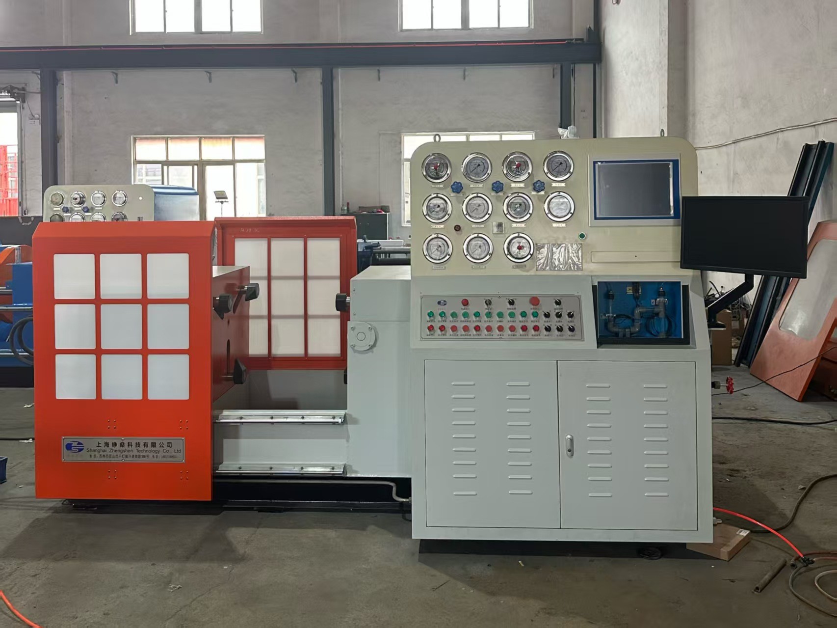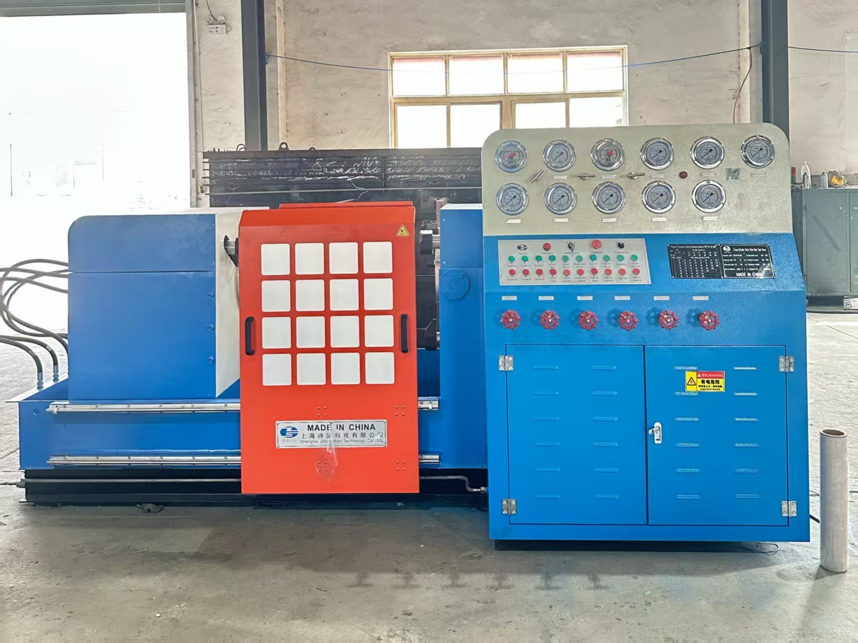 There is safety interlock between oil pressure of clamping cylinders and test medium pressure, oil pressure of clamping cylinders can release after test medium pressure relief.